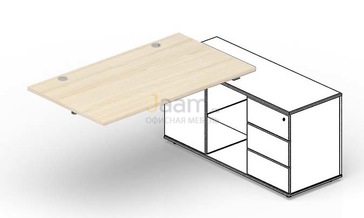 Стол для крепления к сервисной опорной тумбе (2 громмета) STPG166FU №31228 - столешница: дсп 25 мм, кромка: пвх, покрытие: меламин, стекло: тонированное, матовое.